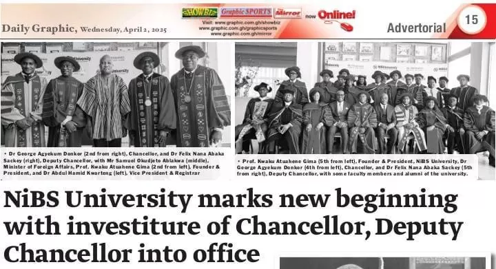 NiBS University has been featured in the Daily Graphic newspaper for its recent investiture ceremony.